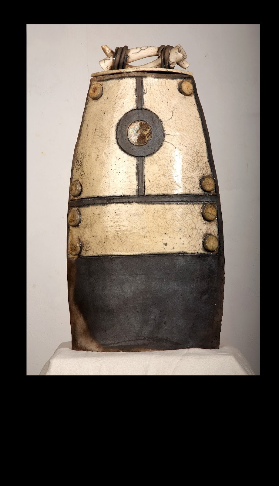La peinture m’offre ce que la terre ne me permet pas d’exprimer, la couleur, et une certaine narration ; par contre, la terre dans ses trois dimensions et ses matières me projette (à mon insu) dans une plus grande sensation d’intemporalité.